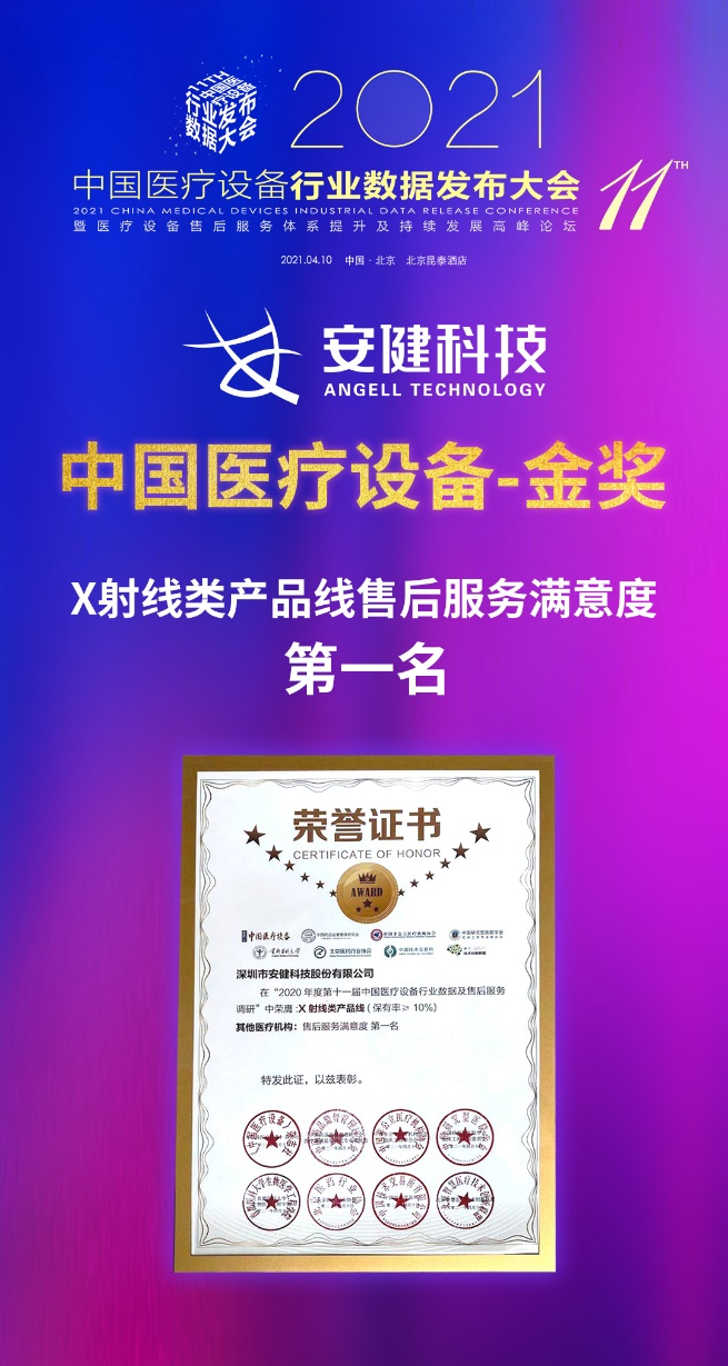 荣获中国医疗设备-金奖 X射线类产品线售后服务满意度第一名